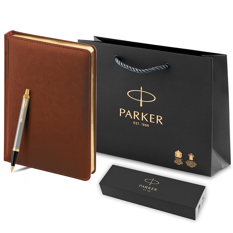 Набор Parker IM Brushed Metal GT из шариковой ручки и ежедневника коричневого цвета в Екатеринбурге